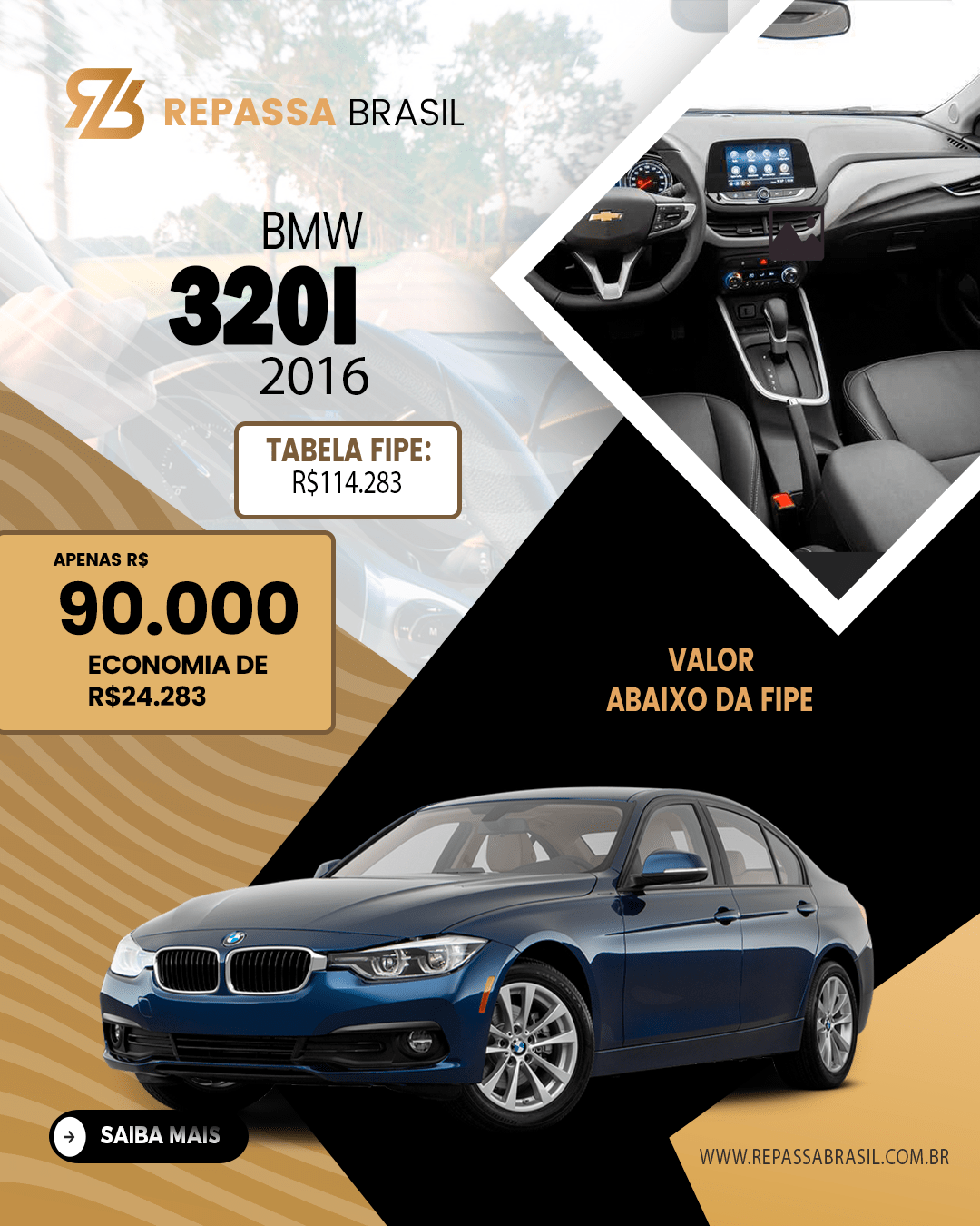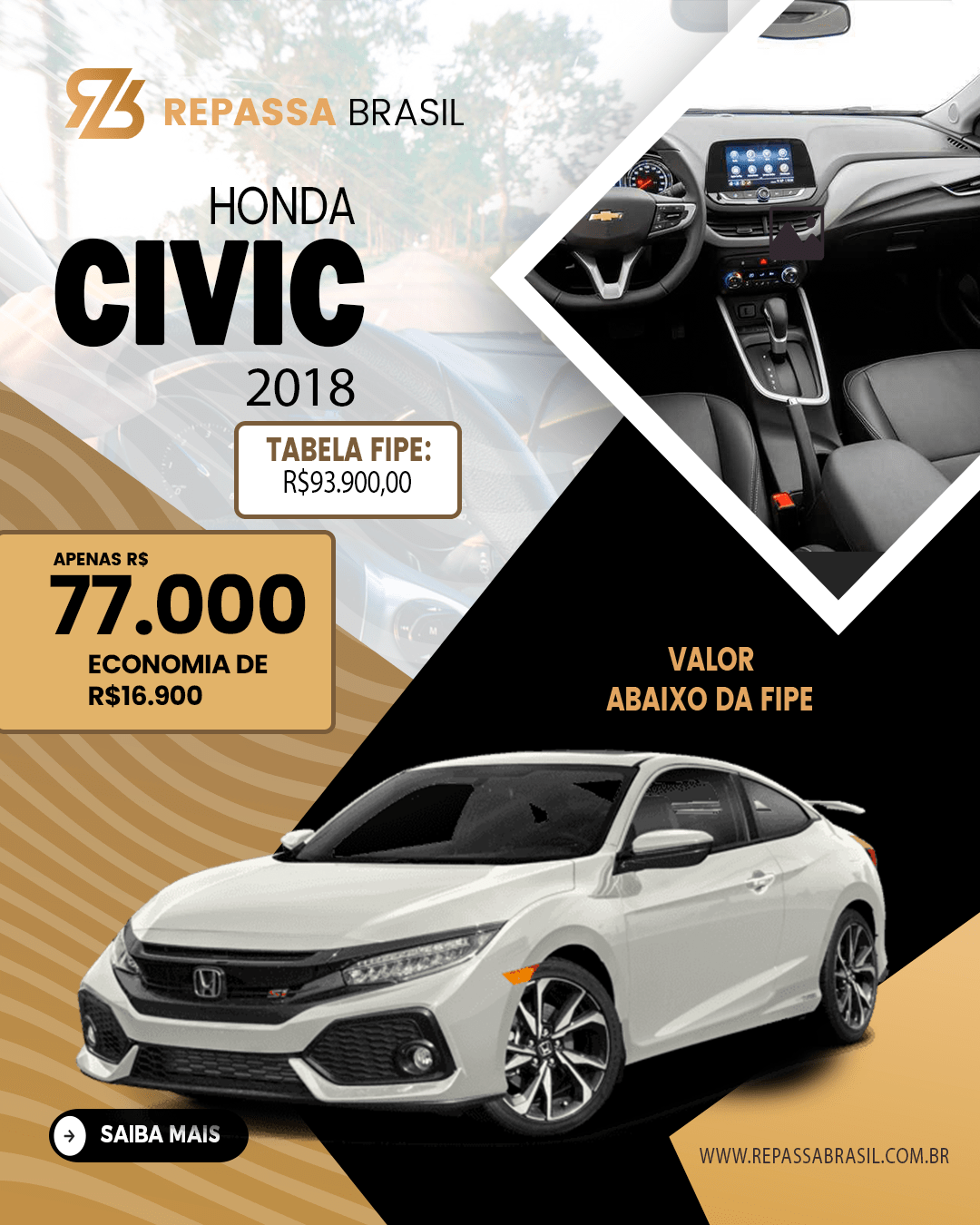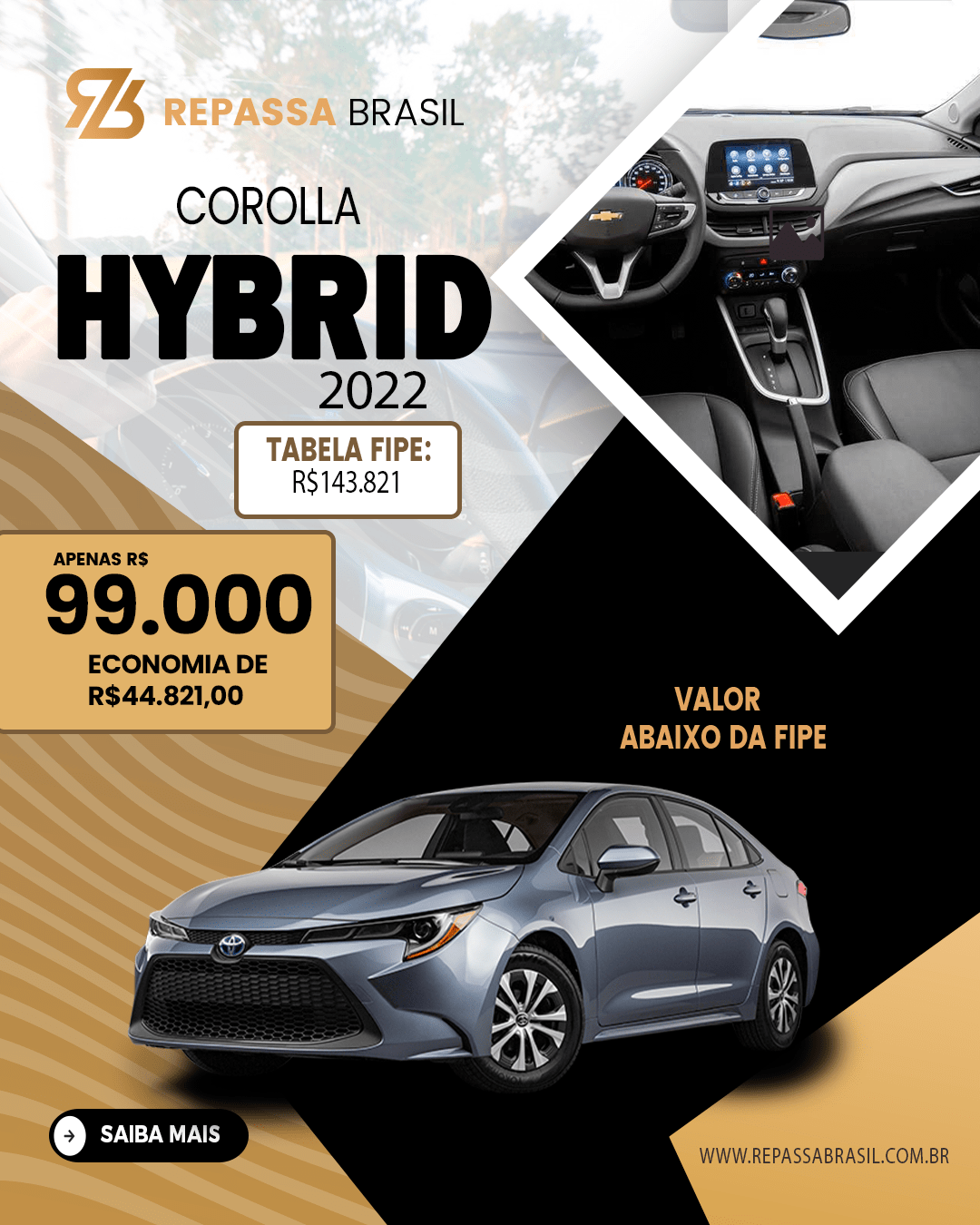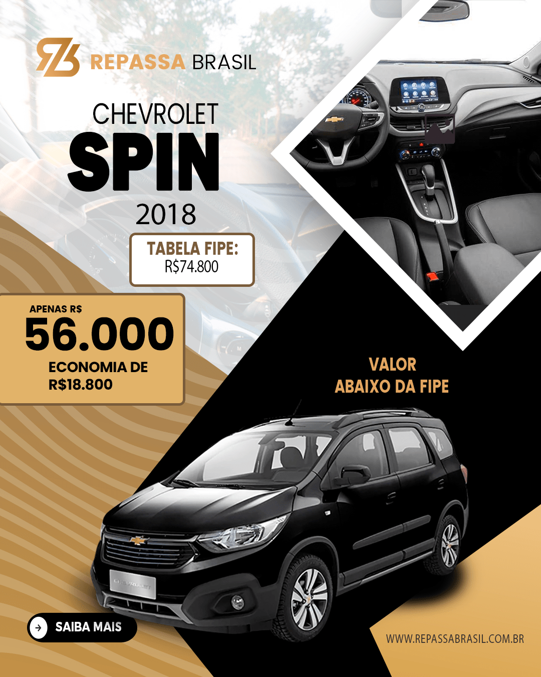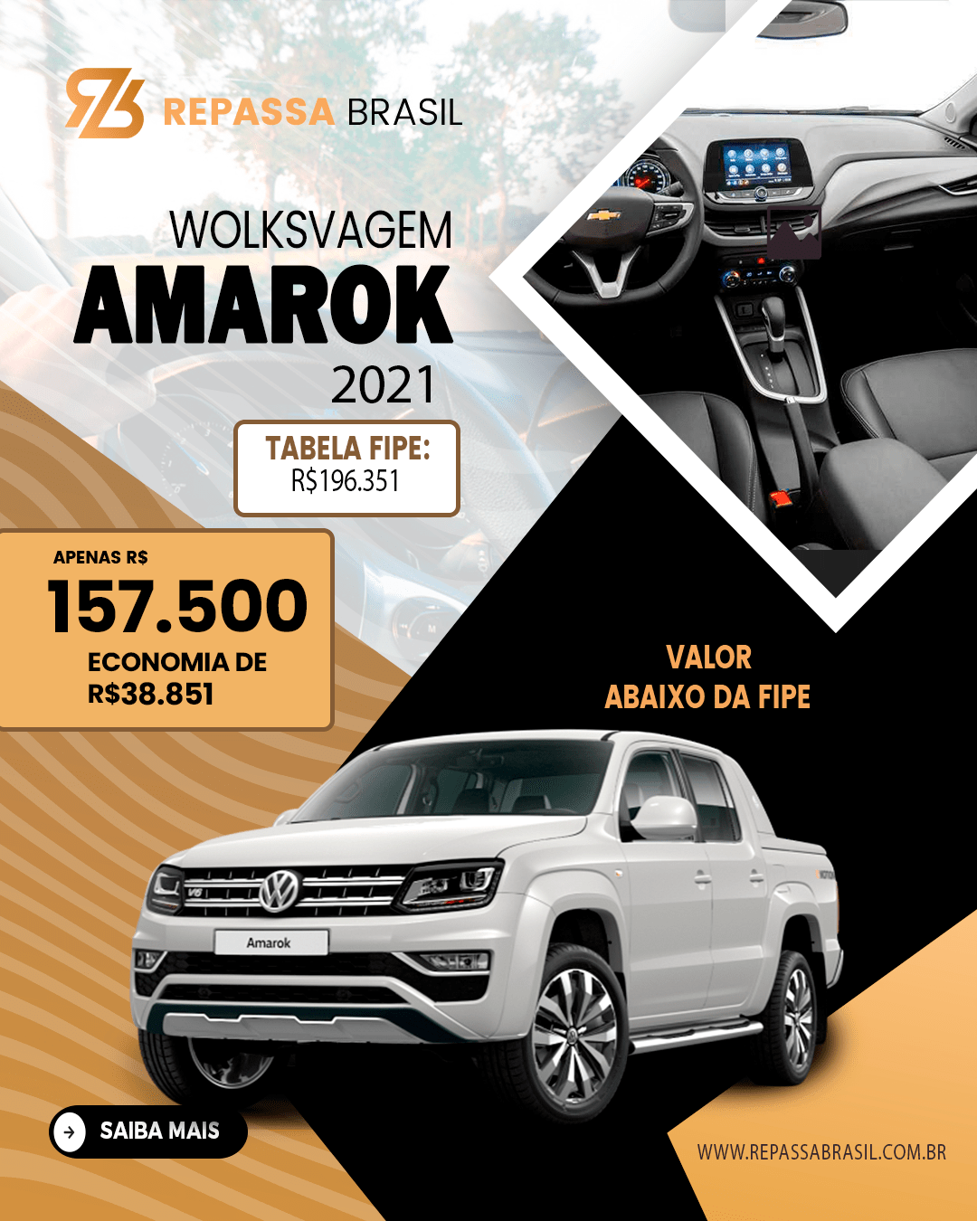 O REPASSA BRASIL garante a presença de veículos anunciados abaixo da tabela FIPE, PORÉM não é possível garantir um desconto mínimo ou uma quantidade mínima de carros com condições ÚNICAS. Os anúncios, as postagens no Feed e Stories das redes sociais entre outros meios de comunicação que possam ser usados para divulgação do Repassa Brasil, são meramente ilustrativos. As ofertas podem sofrer alterações sem aviso prévio. O REPASSA BRASIL é apenas um MARKETPLACE com ofertas selecionadas de concessionárias, POR ISSO não NOS RESPONSABILIZAMOS por nenhuma negociação, OBRIGADO!